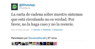 Cómo olvidar la típica cadena indicando que whatsapp va a ser de pago (que al final viene siendo cierto) a menos que reenvíes a cierto número de contactos, idéntica a la que me llegaba hace 10 años por correo electrónico. Está de más decir que no era enviada por la compañía de whatsapp.